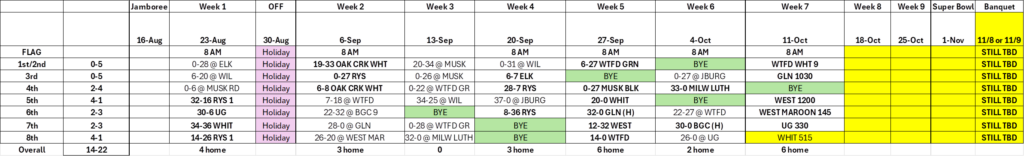 The Flag team will play their FINAL GAME of the season! Good luck ALL FLAGERS!